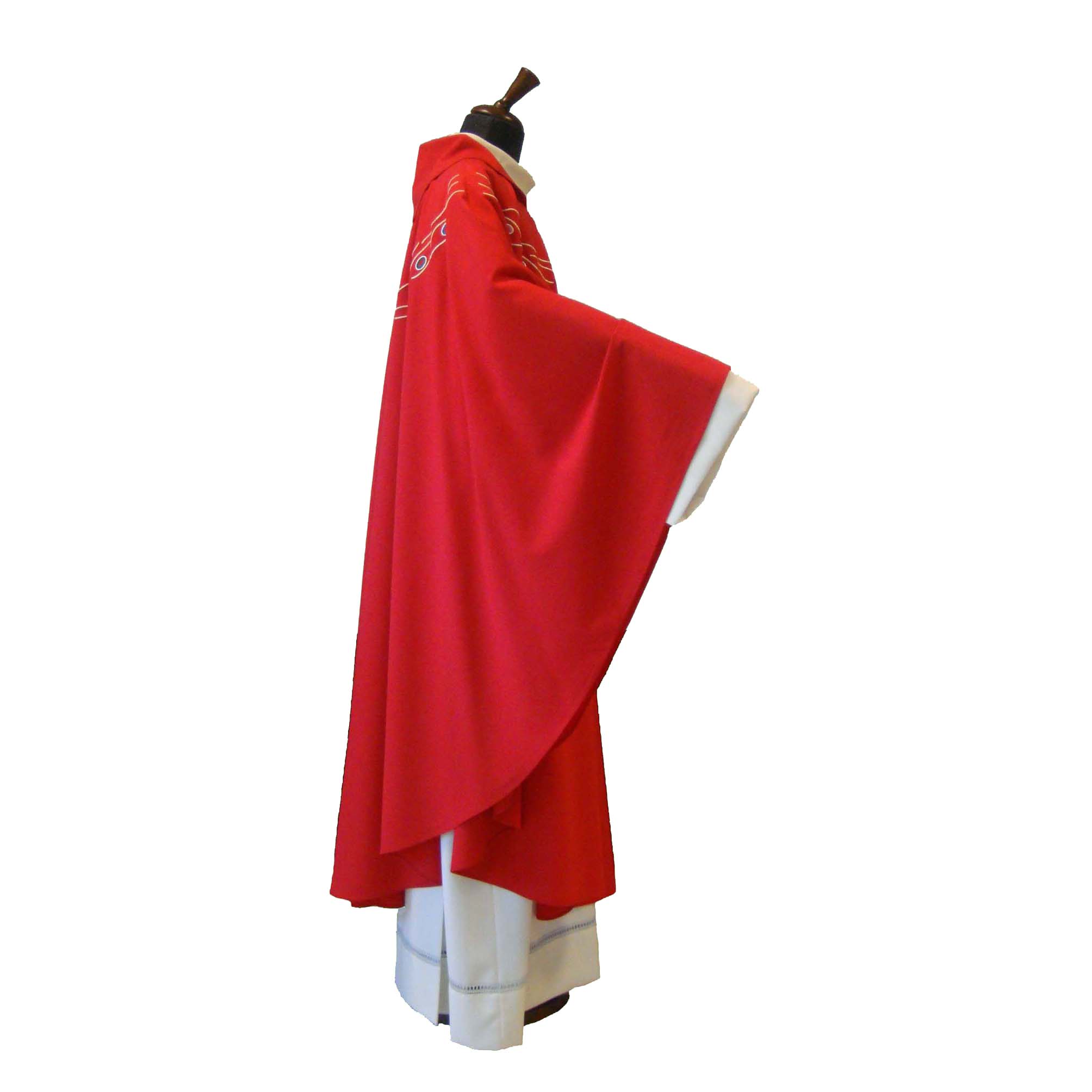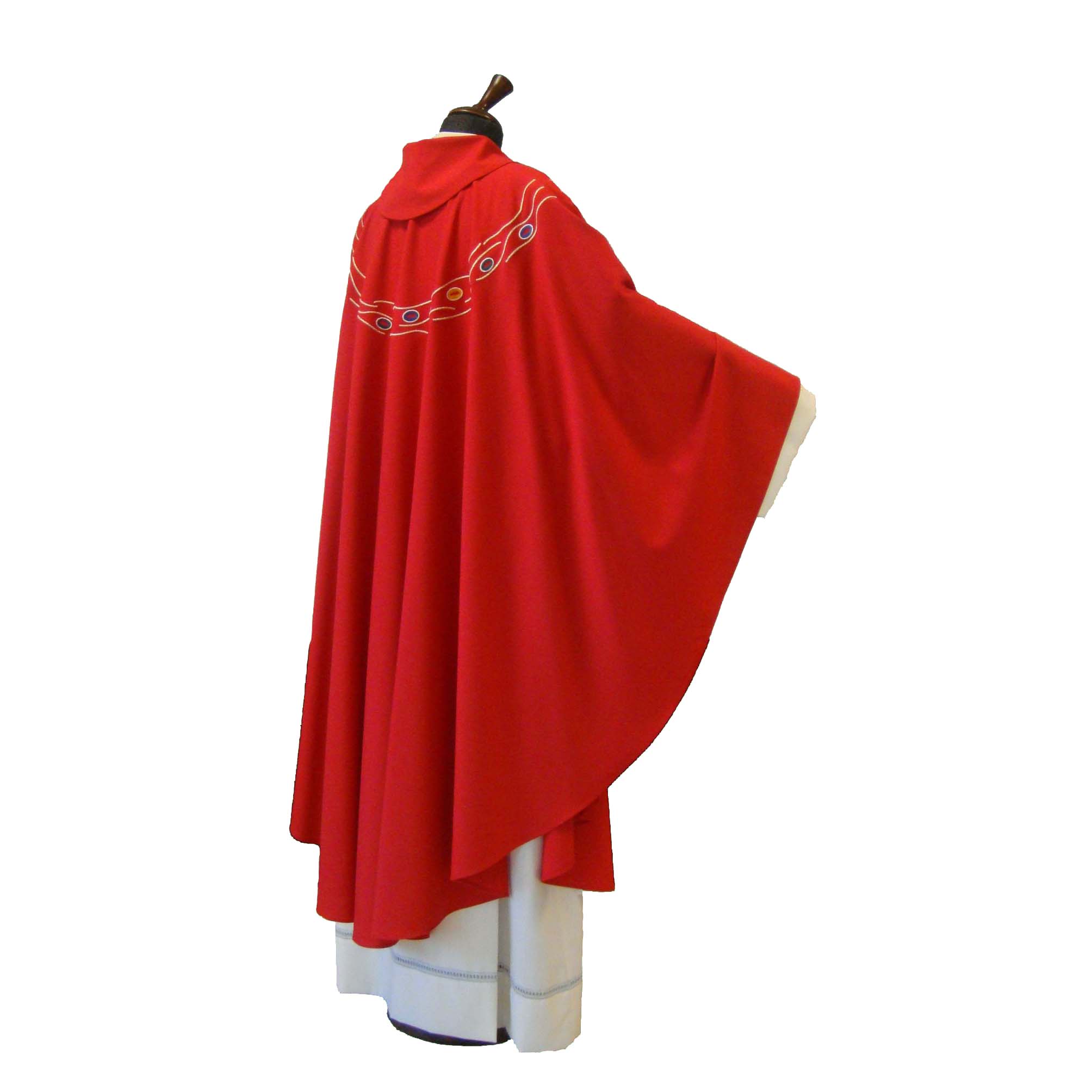 55% polyester cloth, 45% wool, elliptical cut, machine embroidery