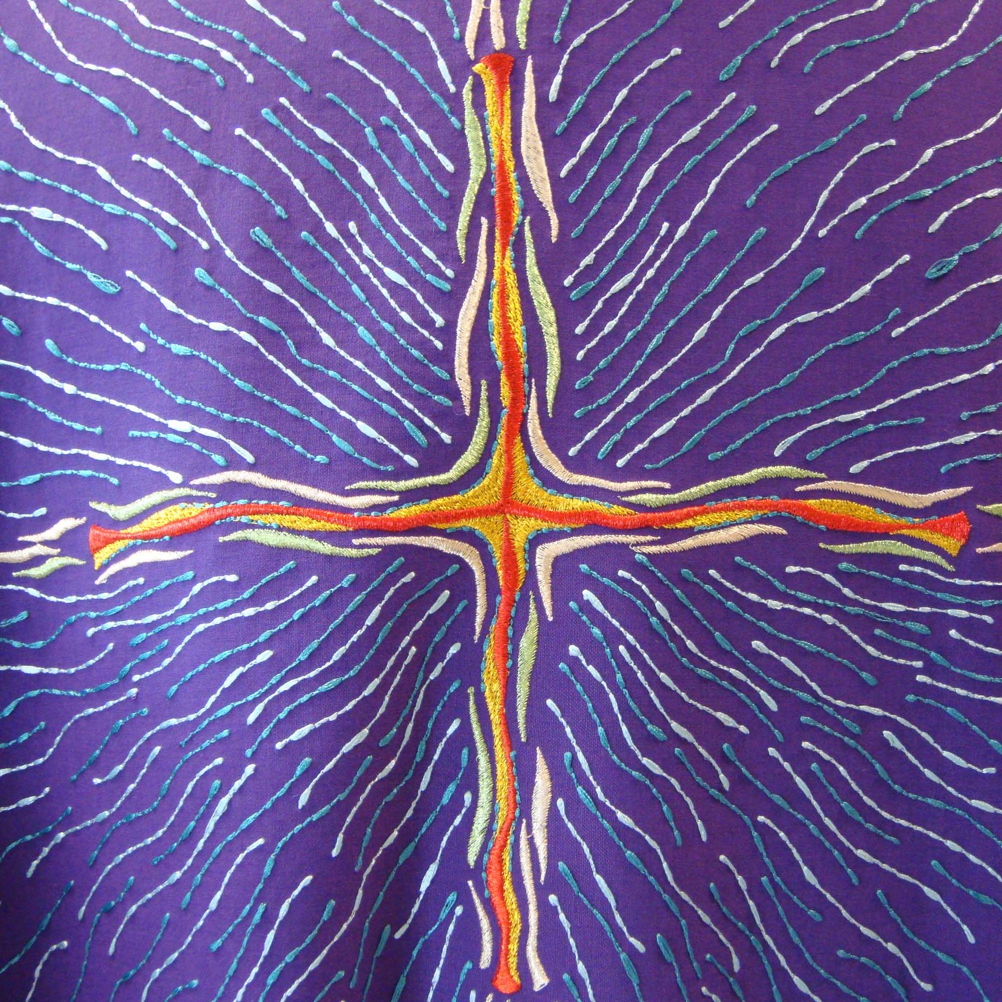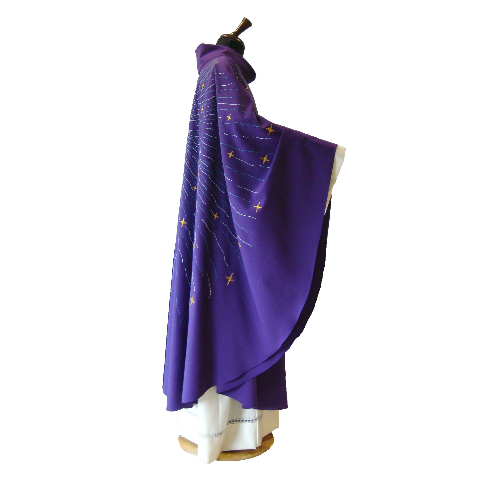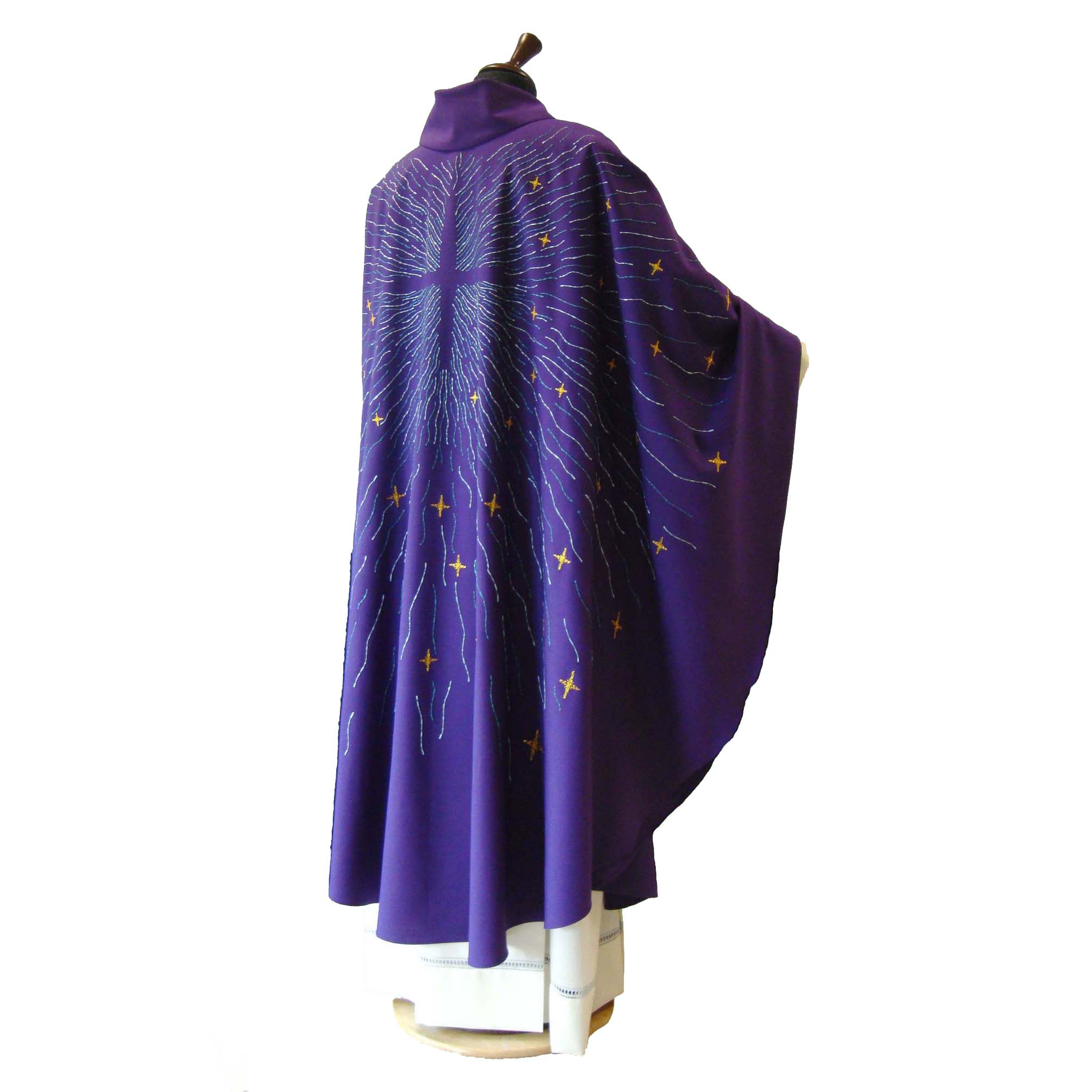 55% polyester cloth, 45% wool - wide elliptical, rich machine embroidery