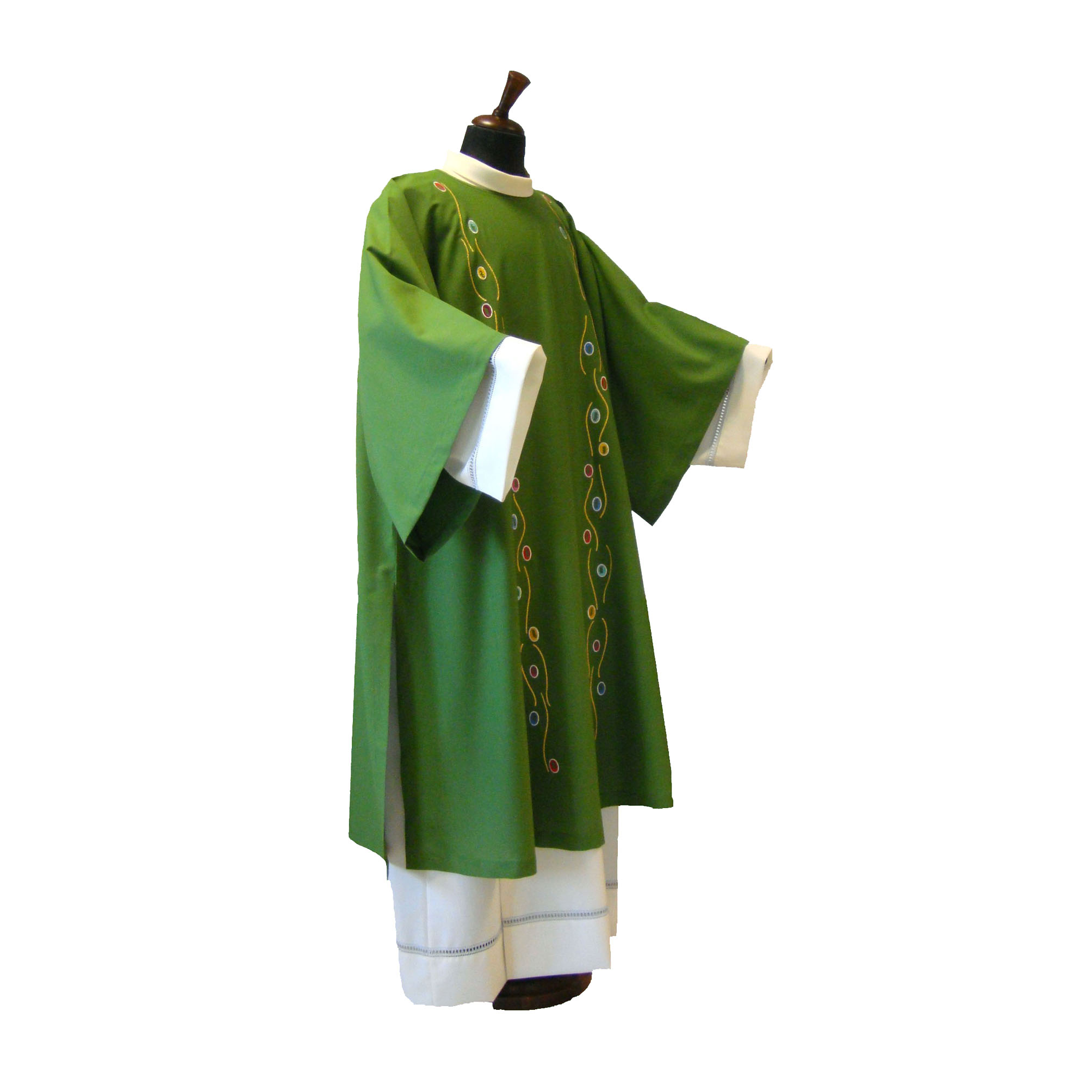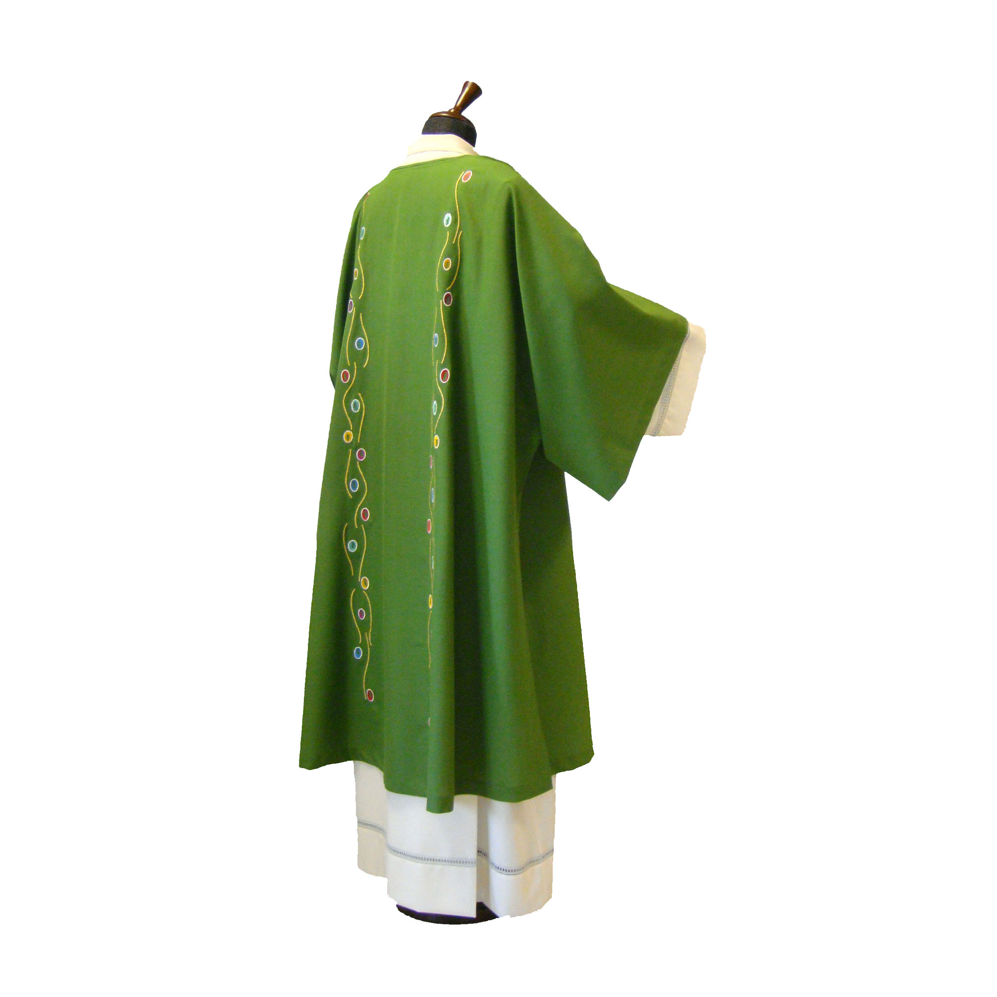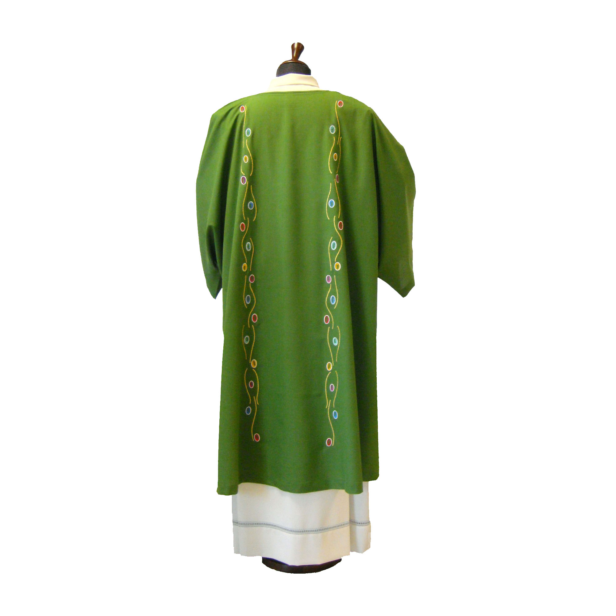 The Vatican Crux, which is reproduced in embroidery, is the oldest relic of the "treasure" of Saint Peter, kept in the Vatican. Reliquary in gilded silver and precious stones, the Vatican Crux dates back to the second half of the sixth century: it was sent as a gift, probably as an ex-voto, by Justin II, Emperor of the East (563-578).
