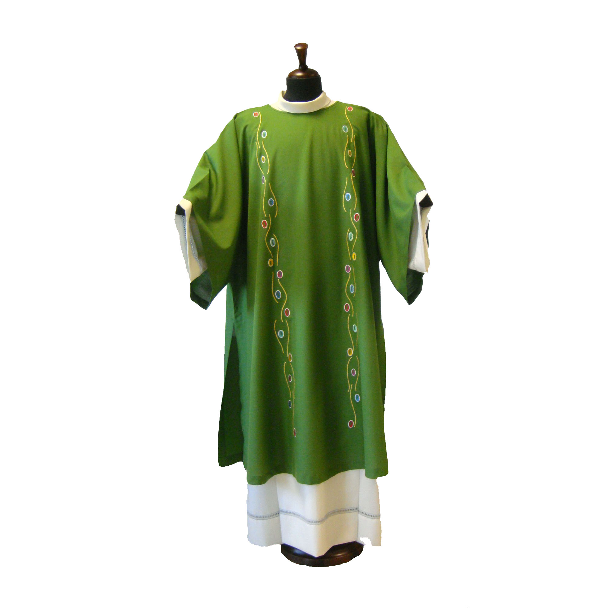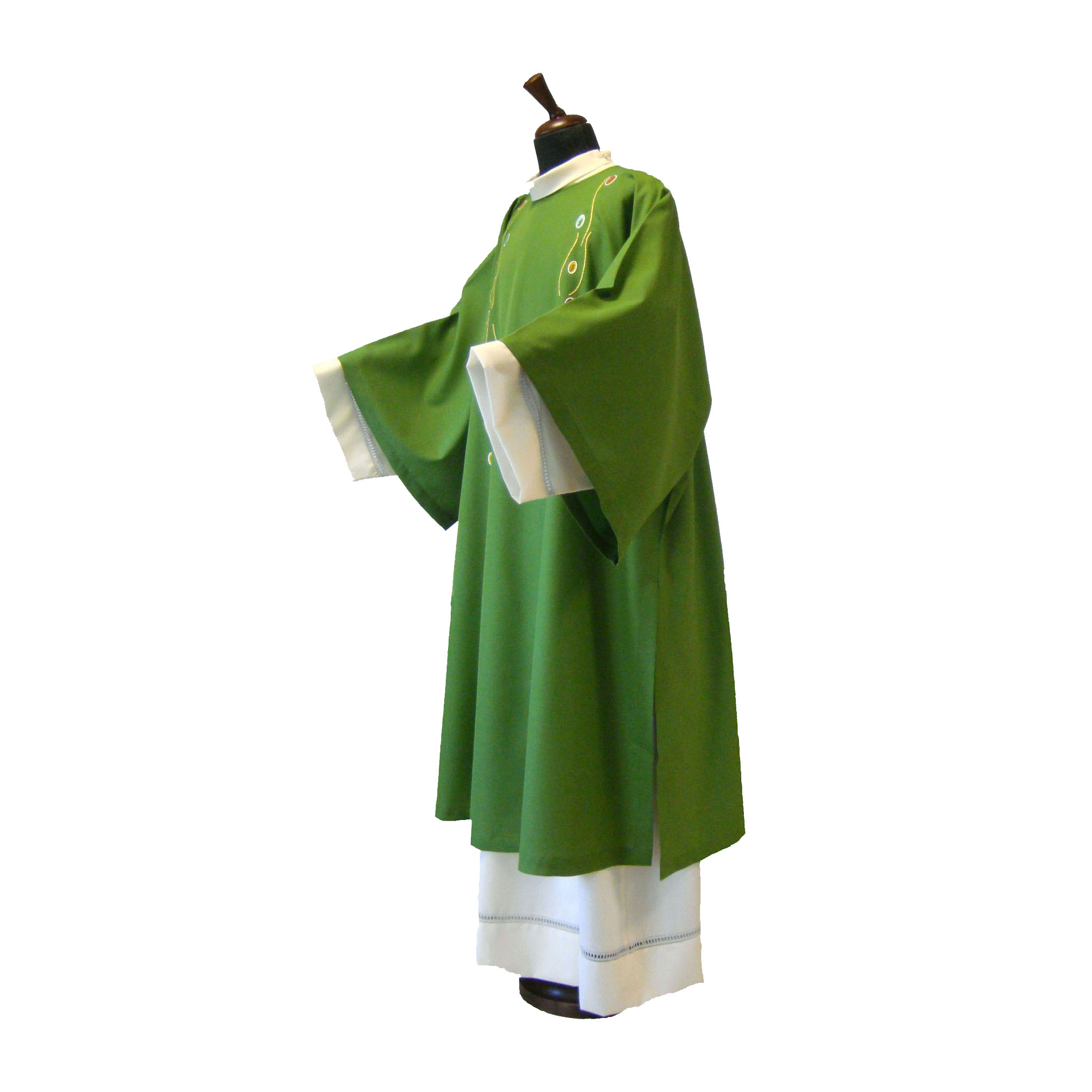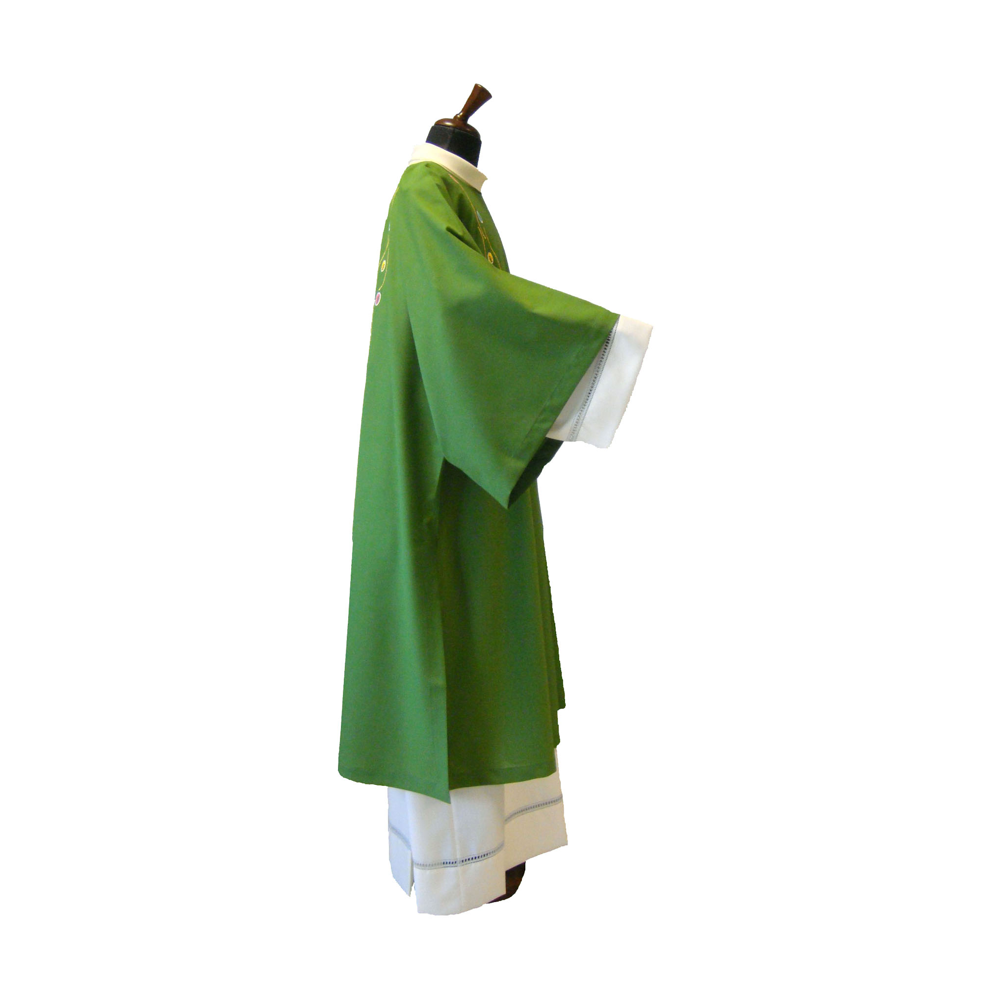 The Vatican Crux, which is reproduced in embroidery, is the oldest relic of the "treasure" of Saint Peter, kept in the Vatican. Reliquary in gilded silver and precious stones, the Vatican Crux dates back to the second half of the sixth century: it was sent as a gift, probably as an ex-voto, by Justin II, Emperor of the East (563-578).