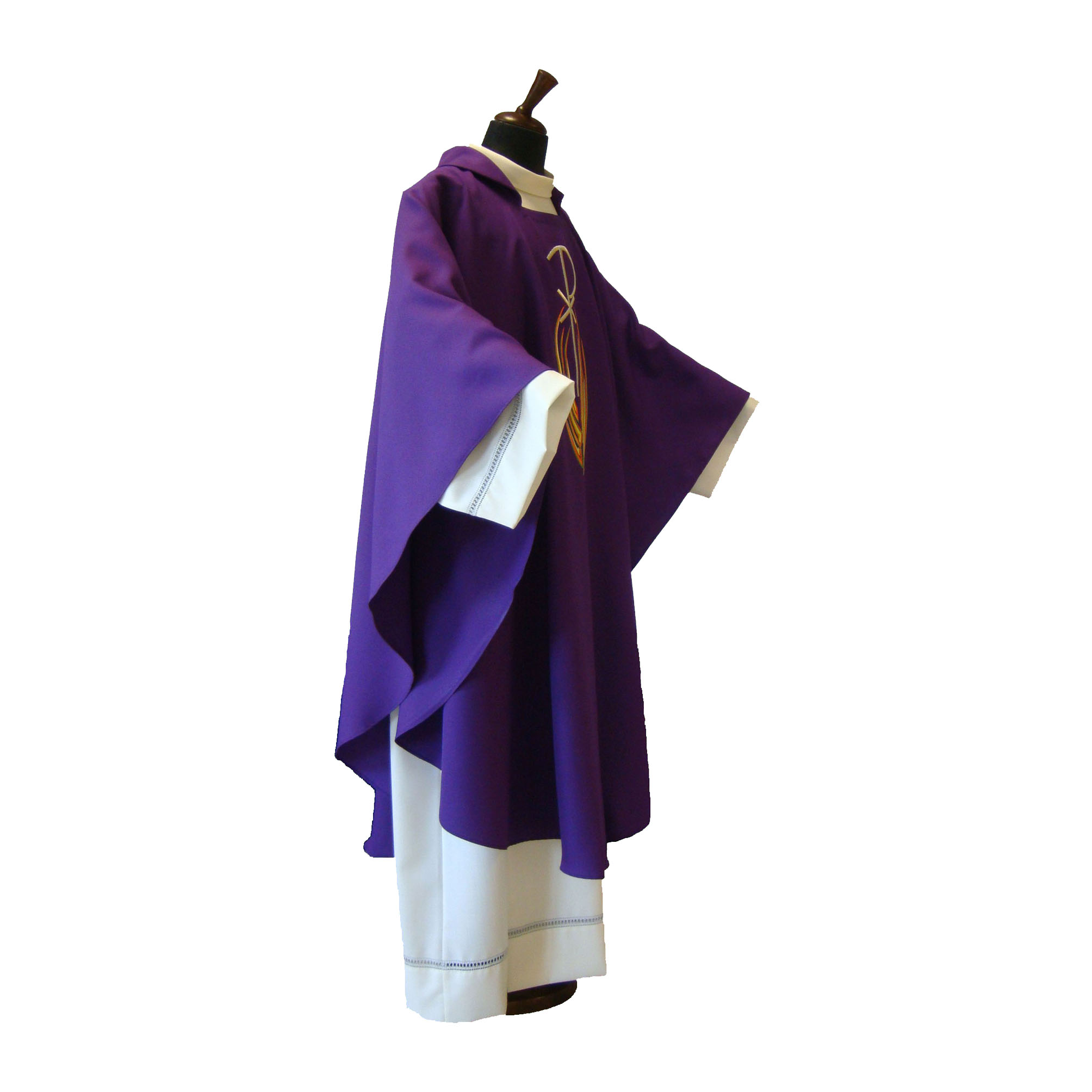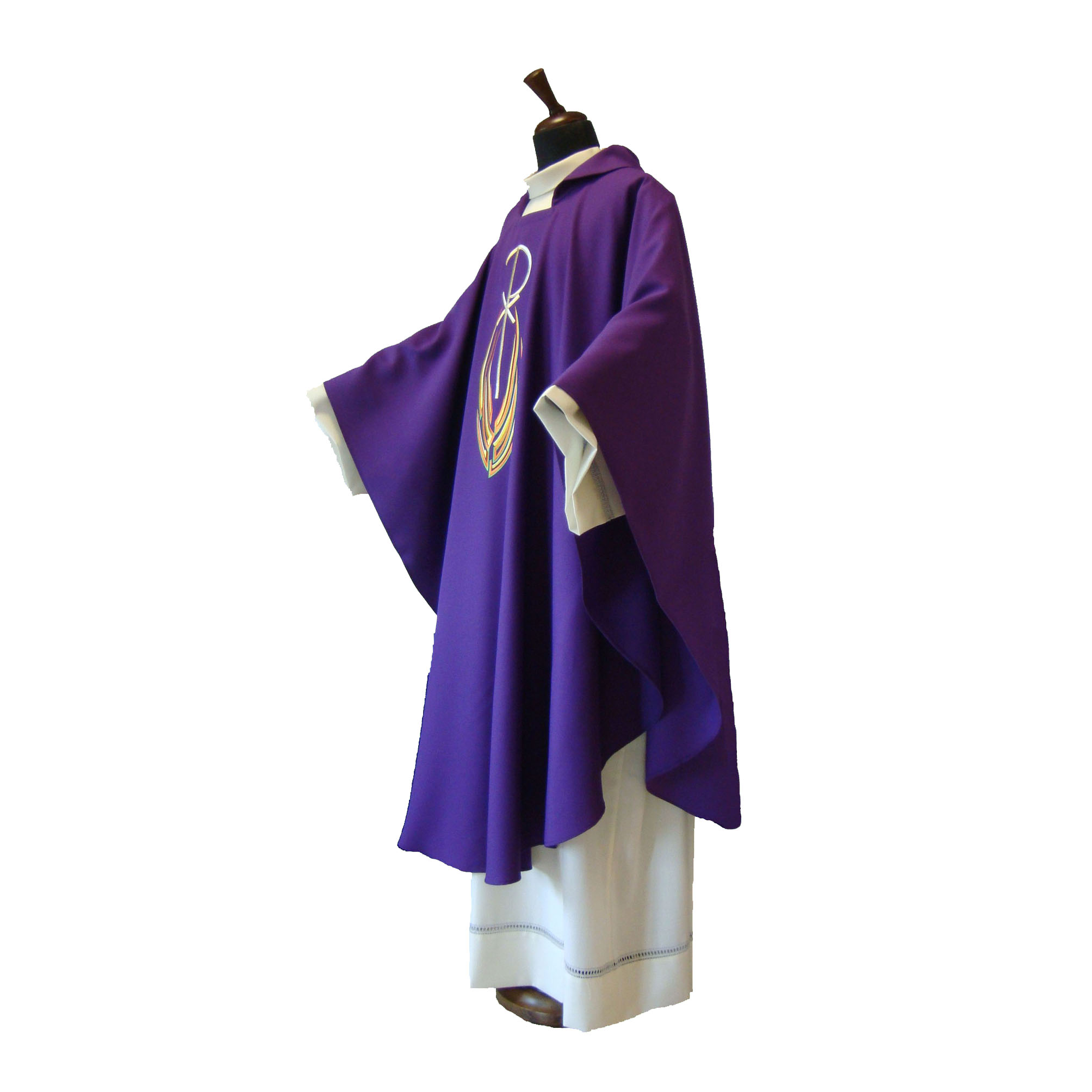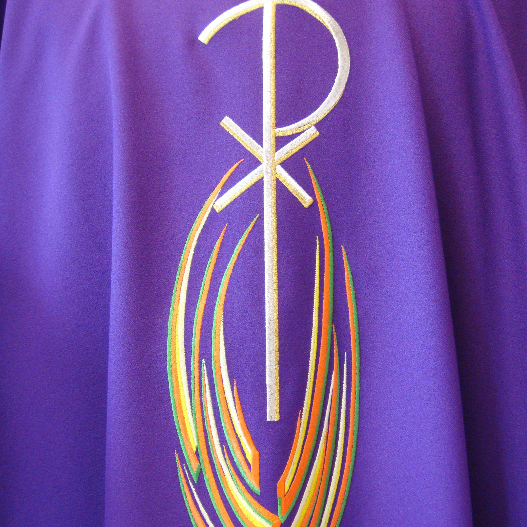 crepe, taglio ellittico, ricamo a macchina