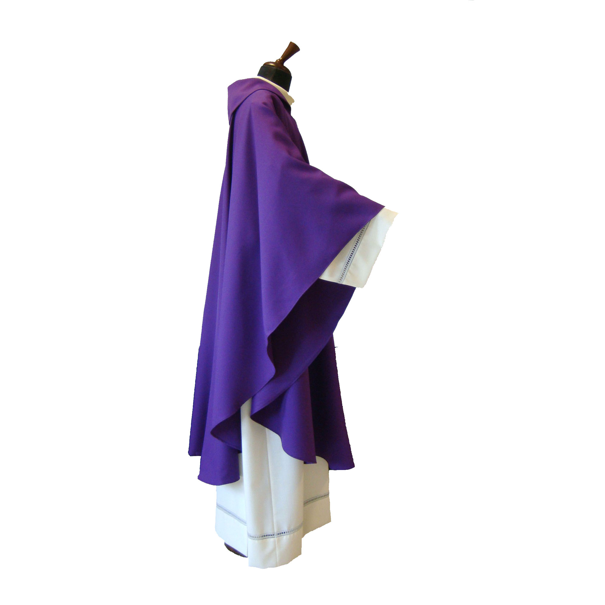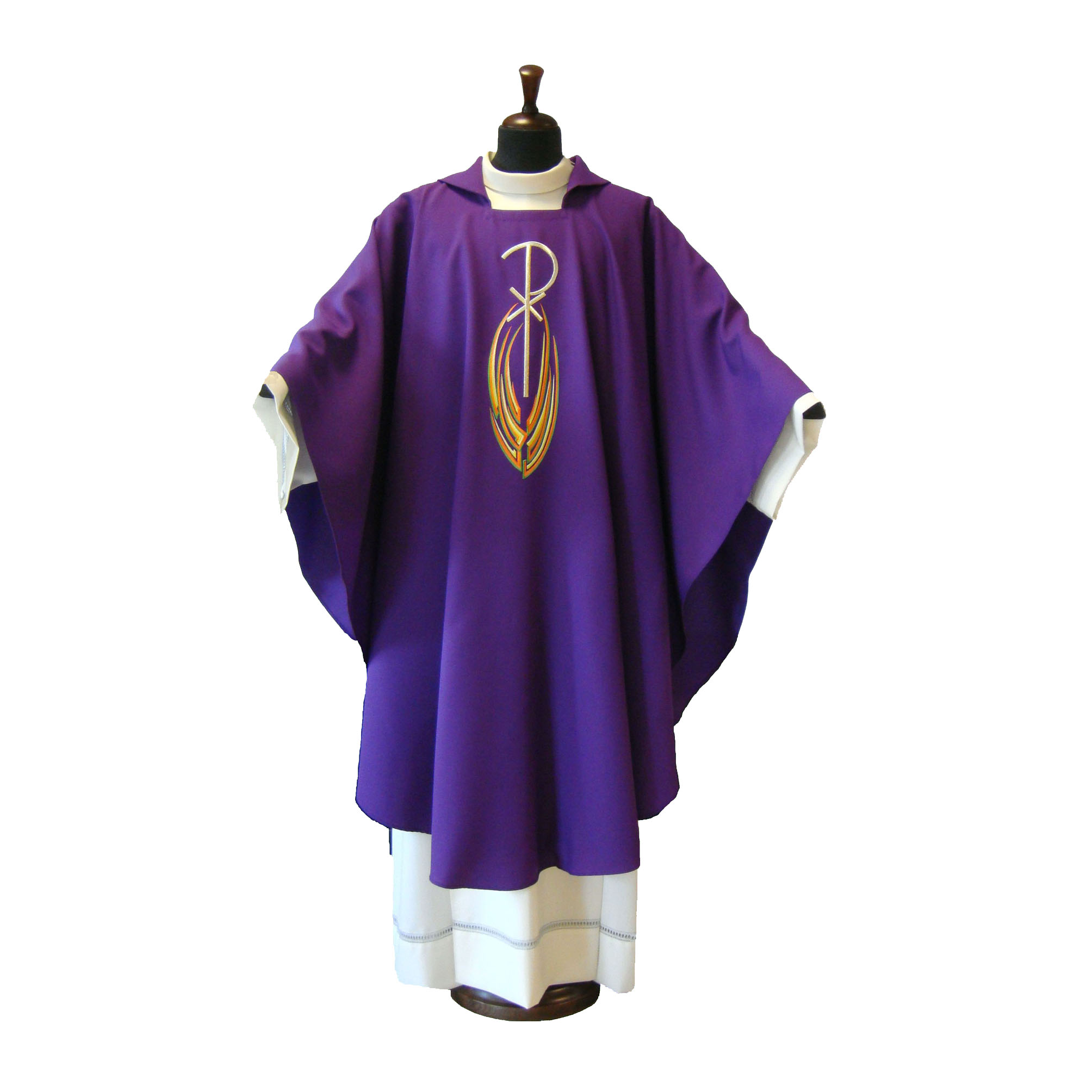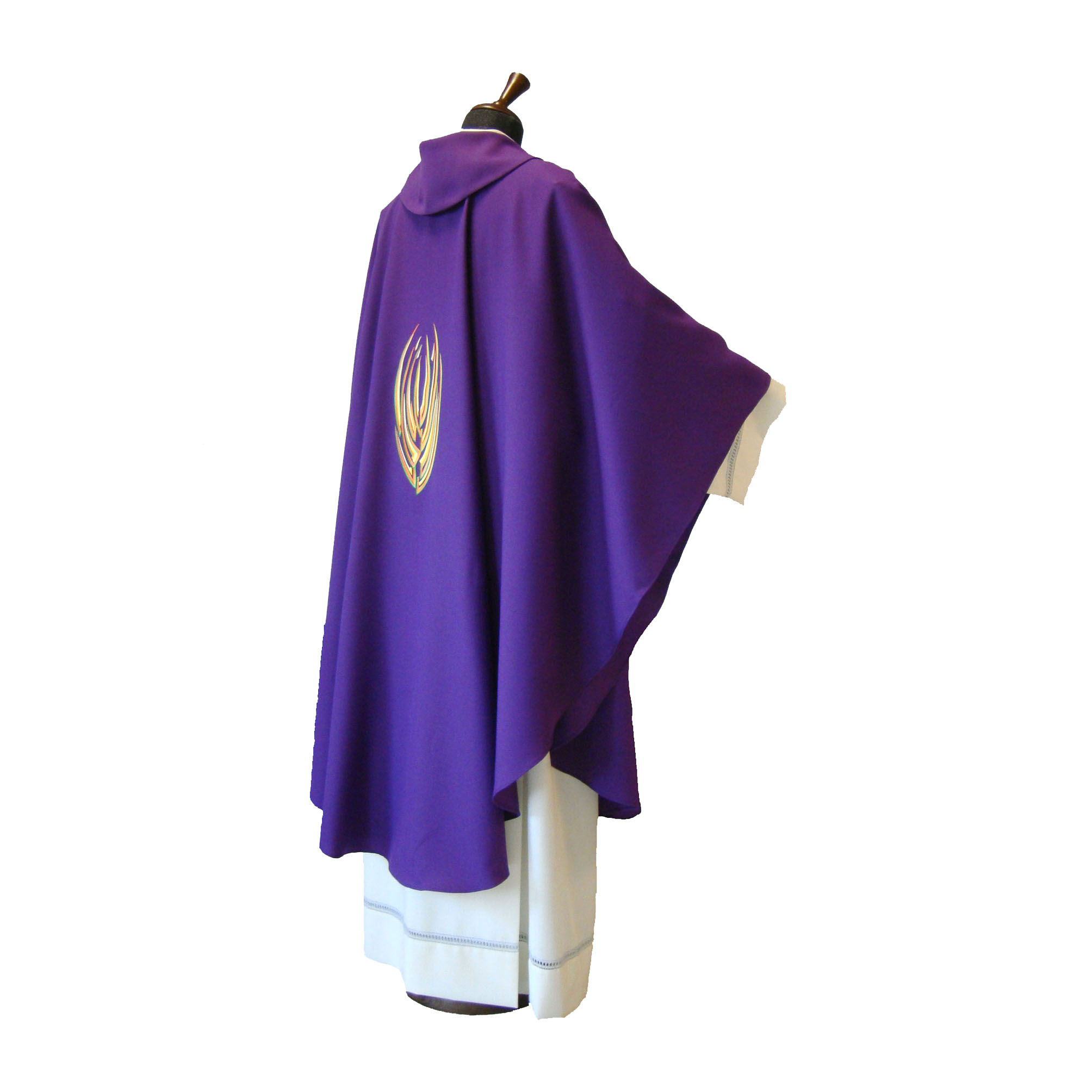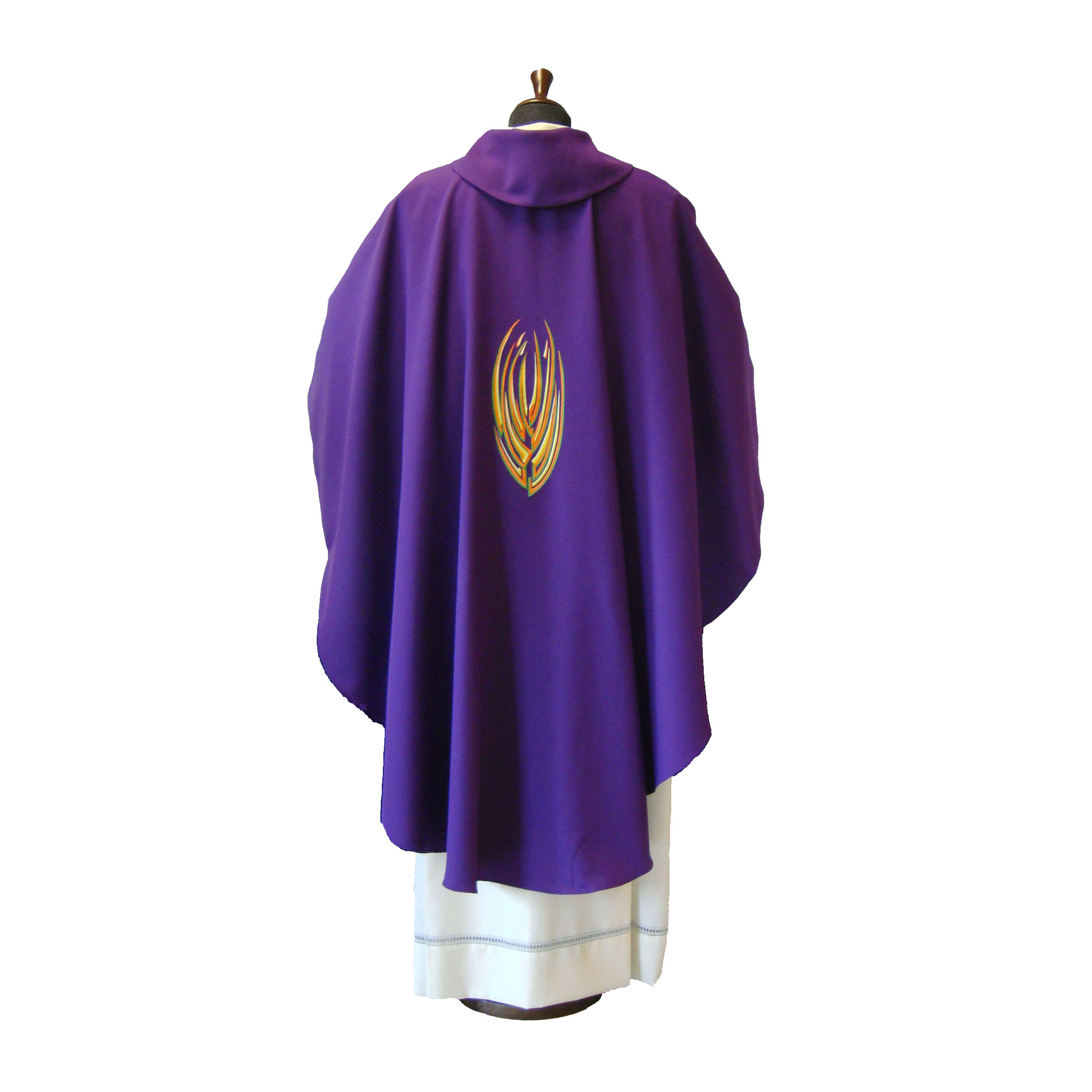 crepe, taglio ellittico, ricamo a macchina