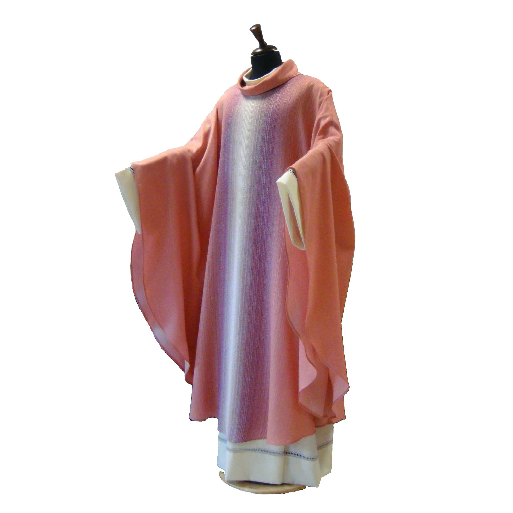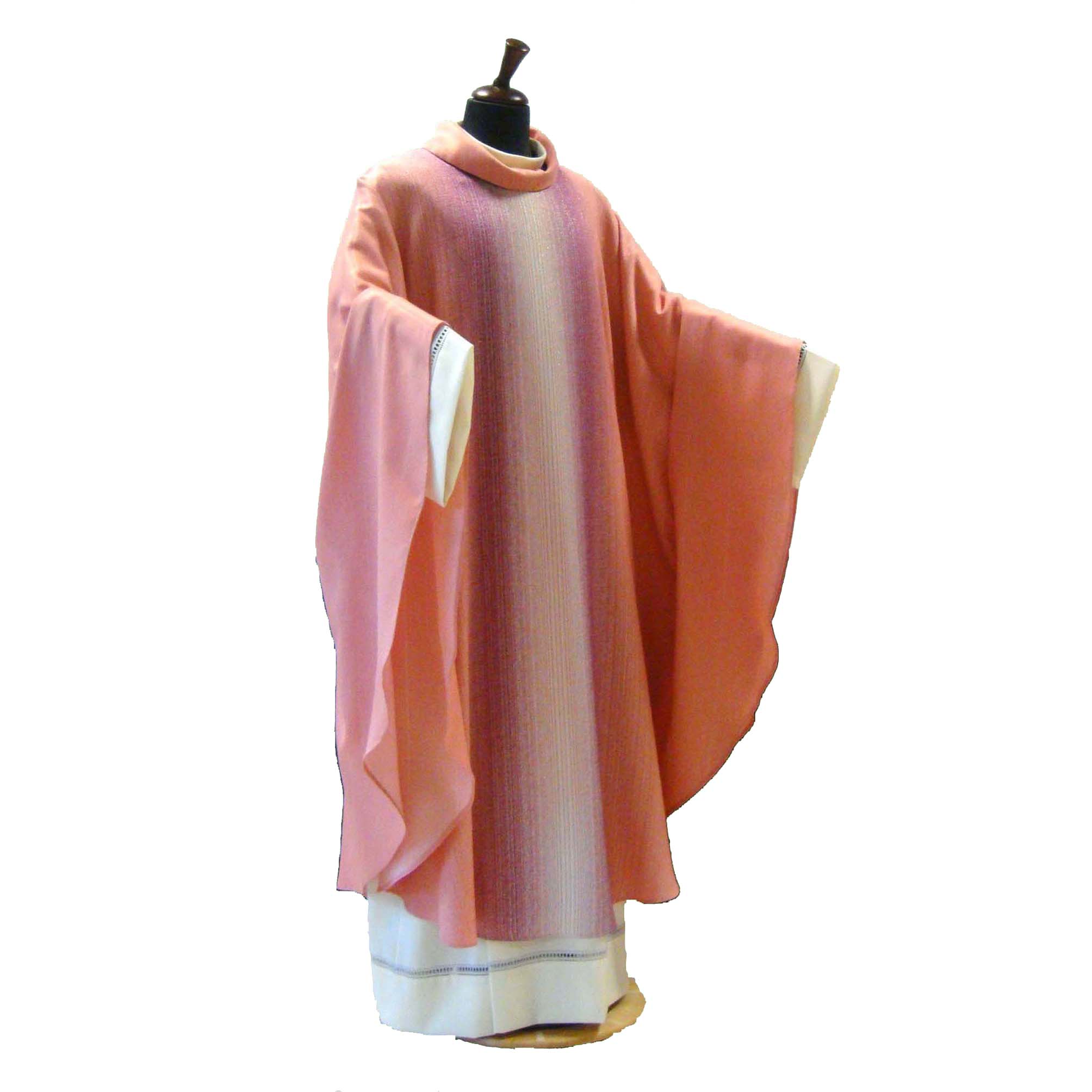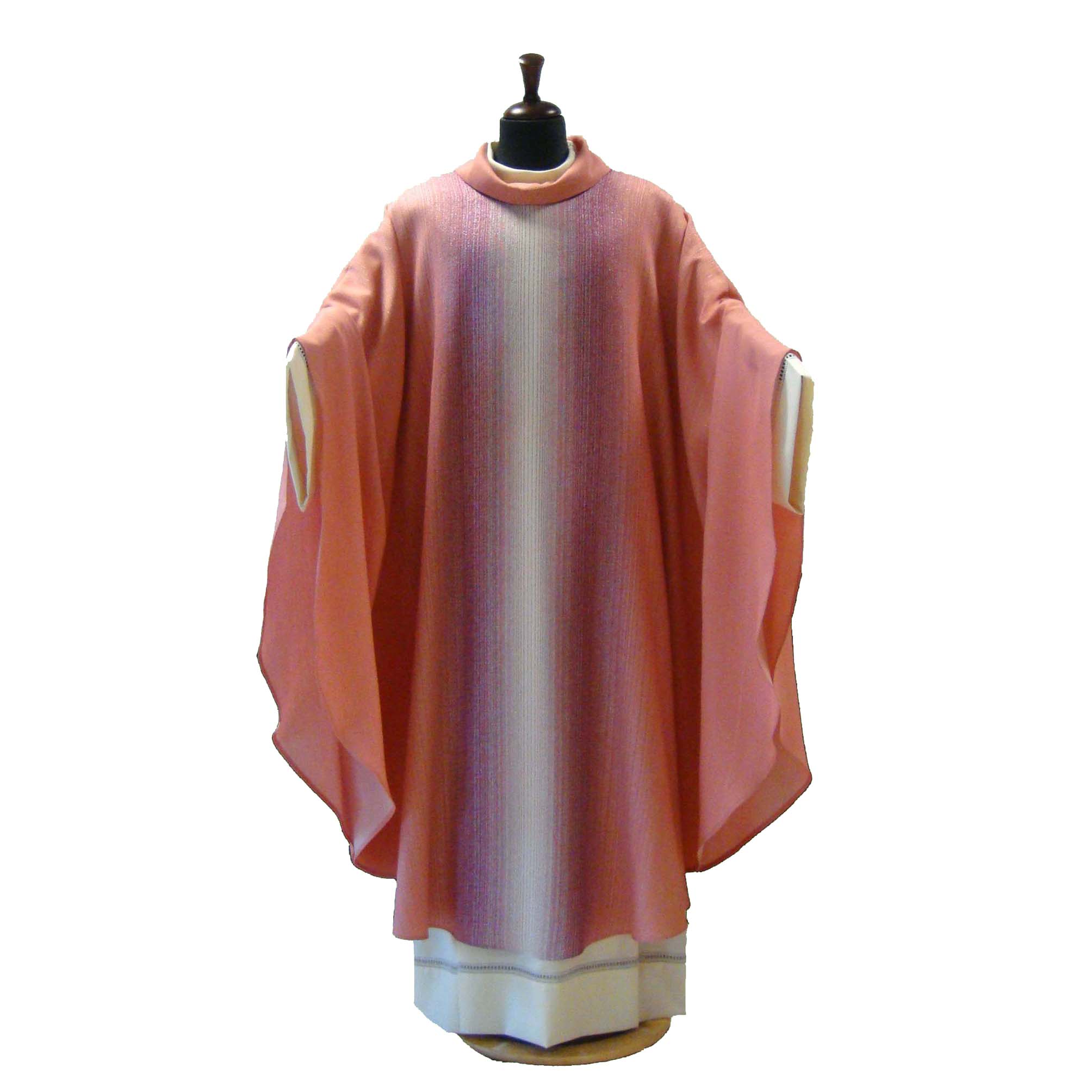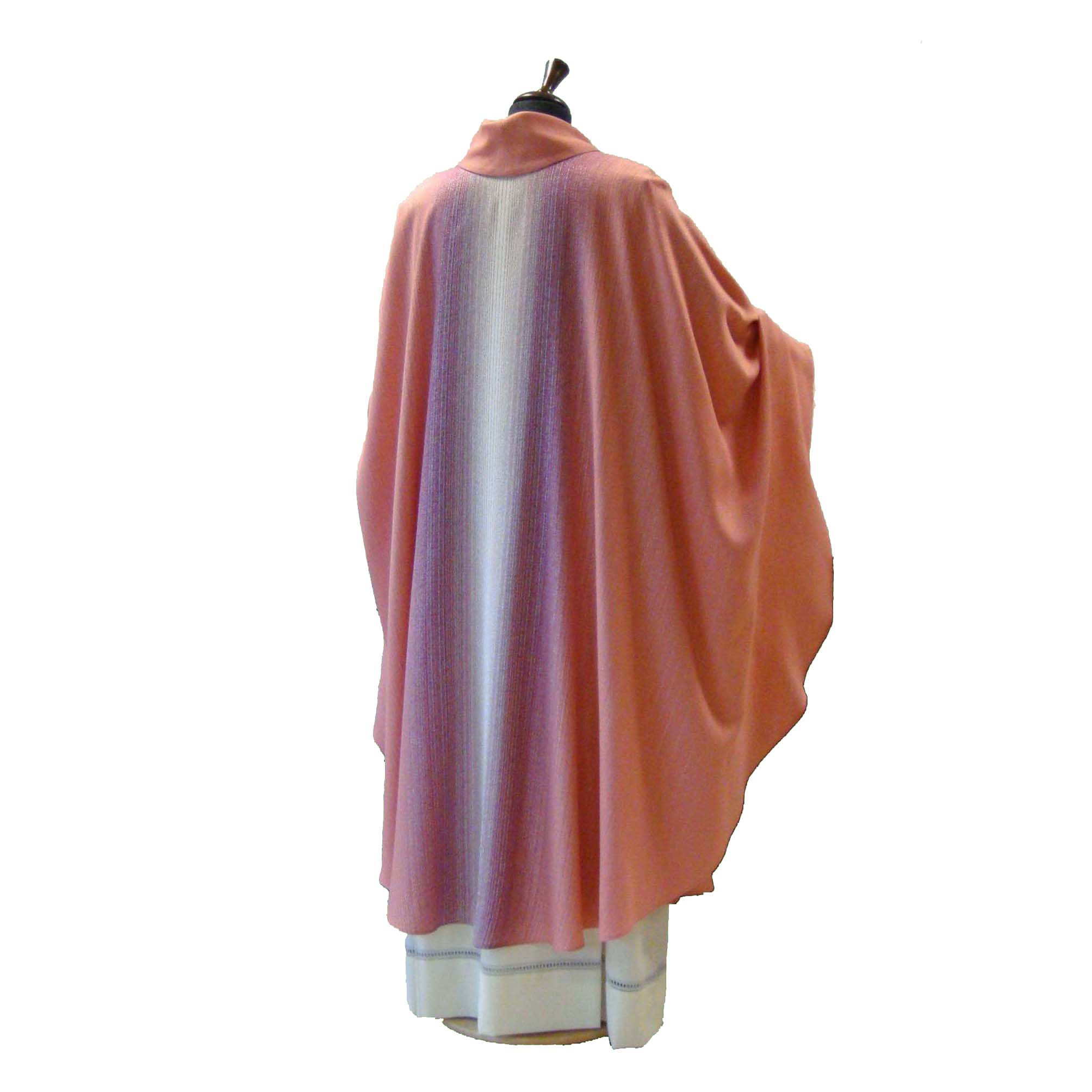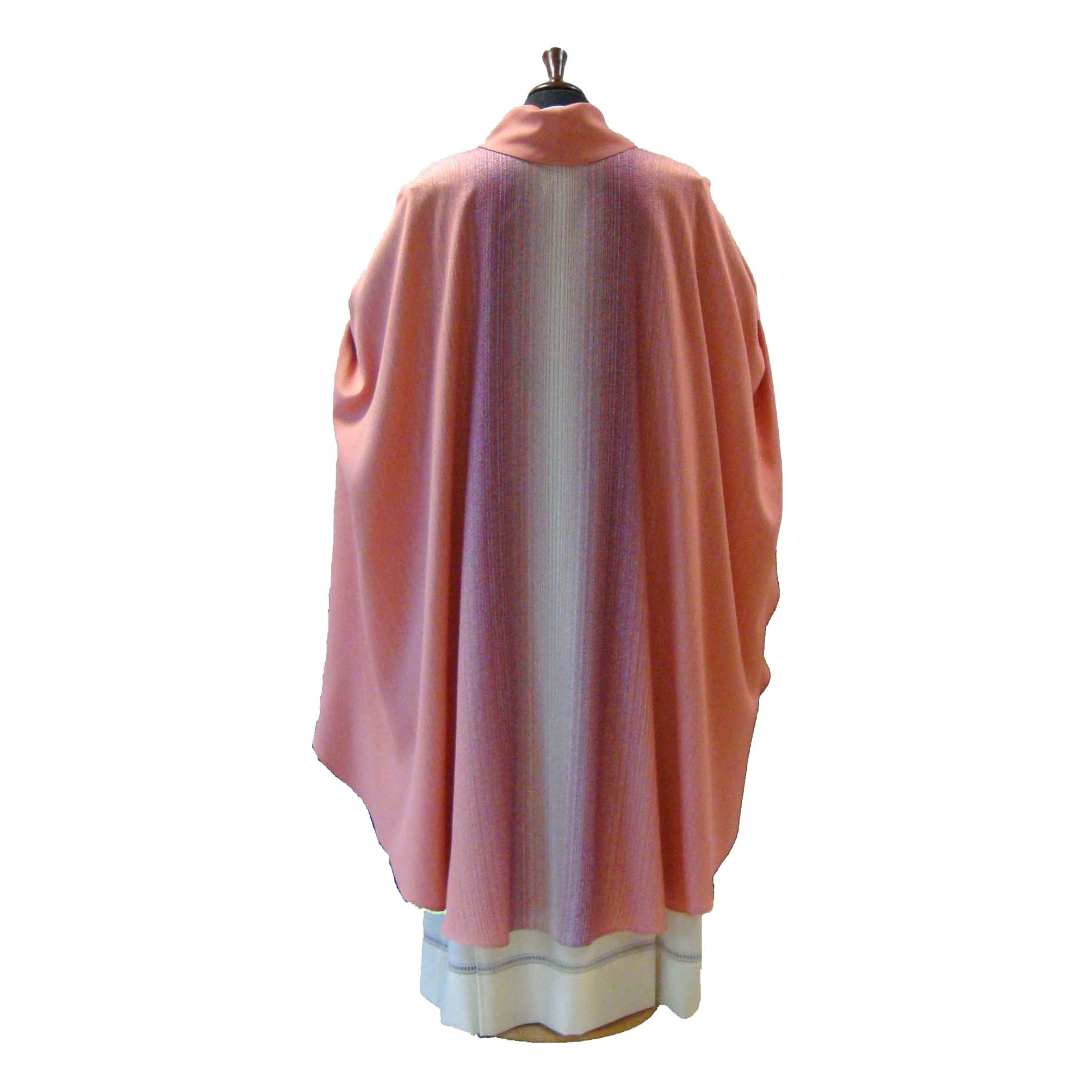 Questa casula è davvero un buon prodotto. Tessuto molto bello e impreziosito dalla sua particolare tessitura sfumata. Non la classica casula rosa confetto ma arricchita del bianco e del viola. Ampia nel vestire. Solenne nella sua essenzialità. Consegna velocissima e assistenza ottima.